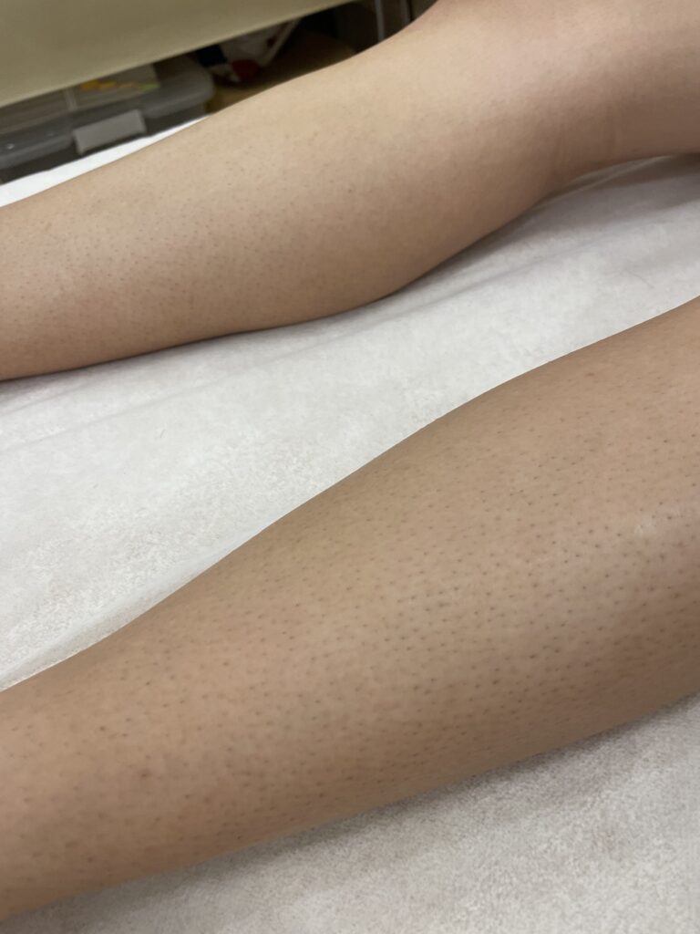初めてスネの脱毛を受けました。 元々、毛が濃いので痛いかな?と心配していましたが、、、 事前にカウンセリングをしてくださり、私に合ったレベルで施術してくださいました! 8回通い、今ではほとんど自己処理せず過ごせているので、肌にも負担がなく、とても楽です。